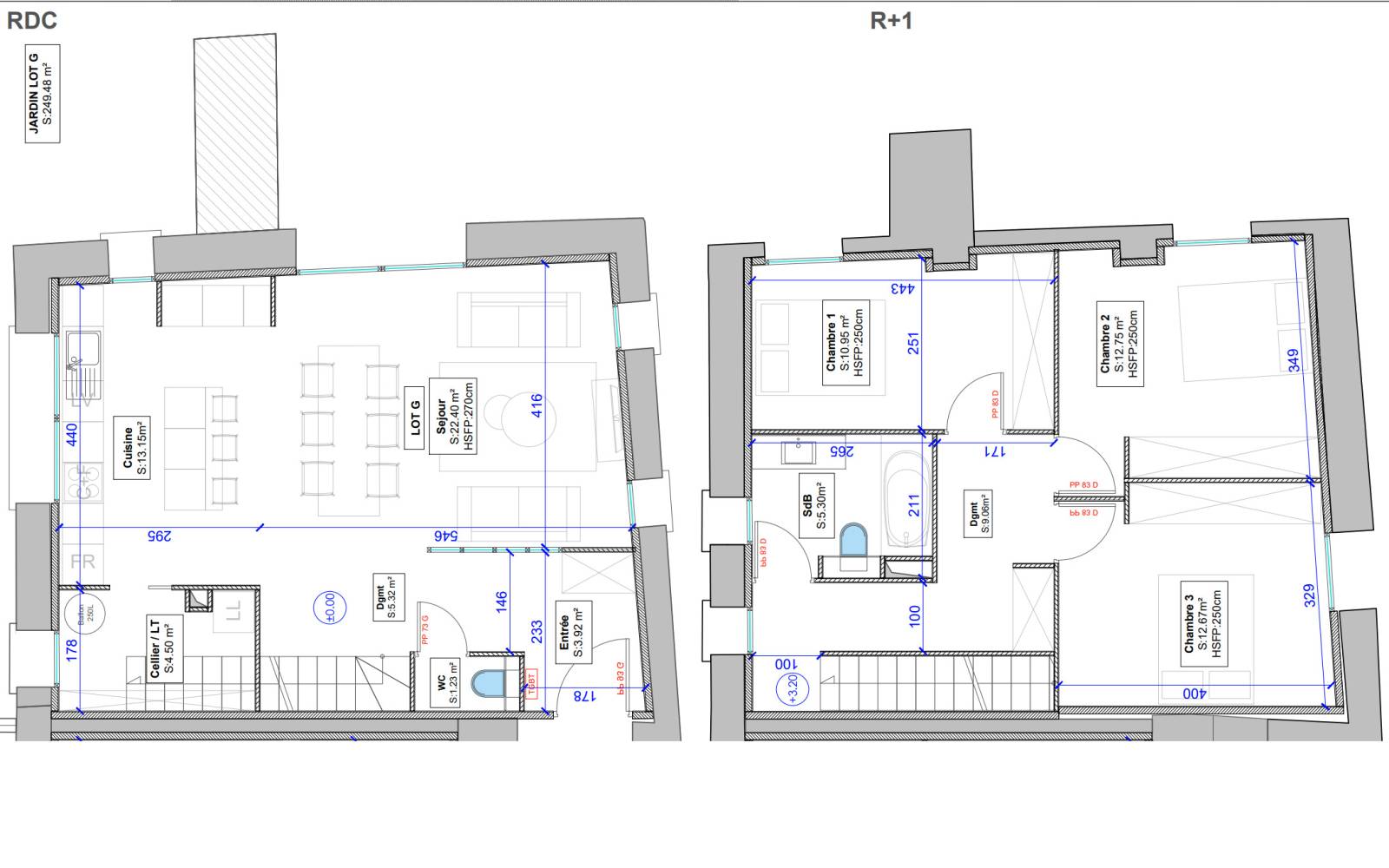 - Les jardins privatifs seront fermés par un grillage rigide hauteur 1.30 m avec un portillon RAL 7016 posé sur un soubassement de 20 cm environ.