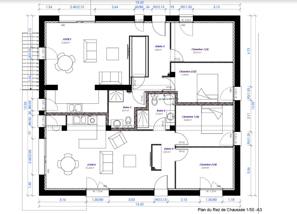 - Toutes les menuiseries seront en couleur RAL 7016